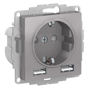 ATN000330 Atlasdesign розетка 16А c 2 USB A+A, 5В/2,4А, 2х5В/1,2А, механизм, алюминий